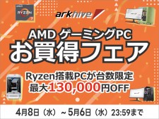 Ryzen搭載PCが最大13万円OFFになる「アーク GW先取り AMD ゲーミングPCお買得フェア 2026」