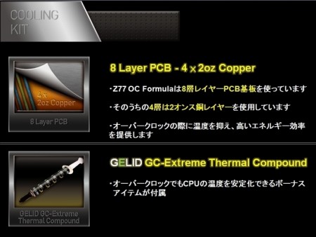 「Z77 OC Formula」では、オーバークロック耐性を高めるため「電源」「冷却」「接続」の3つの要素に注目。Nich Shih氏の助言を取り入れ、これらの要素を極めることで優れたオーバークロック耐性を実現している。