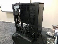 これにより、内部スペースも大幅に拡張され、水冷用ラジエータは最大5台、冷却用ファンは15基まで内蔵可能。またドライブベイも5.25インチオープンベイ×4、2.5/3.5インチシャドウベイ×9(うち3基はホットスワップ対応)と豊富に用意され、電源ユニットも2台まで実装することができる。