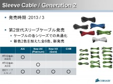 こちらは3月23日発売予定で、製品ラインナップは430Wモデル「XC430M」(市場想定売価税込6,980円前後)、500Wモデル「CX500M」(市場想定売価税込8,280円前後)、600Wモデル「CX600」(市場想定売価税込9,280円前後)の3機種が用意される。また、「CX SERIES」シリーズにも対応するオプション用スリーブケーブルについても3月中より発売開始。カラーはブラック、メタリックグレー、ブルー、レッド、グリーン、シルバーの6色展開だ。