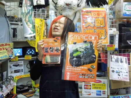 スマホ系アイテムも充実のサンコーレアモノショップ秋葉原総本店より、本日はAndroidでゲームにどっぷり浸れるBluetoothコントローラ「SMACON」のご紹介だ。難解な設定不要のお手軽仕様、ワンタッチ合体で愛用のスマホがたちまち携帯ゲーム機に早変わり。早速サンコーの顔としておなじみ、佐々木さんに色々聞いてみよう。