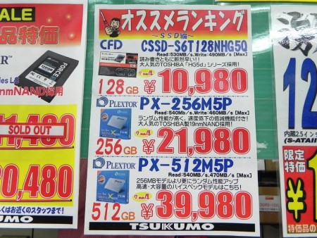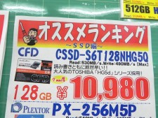 ちなみに128GBはCFD販売株式会社の「S6TNHG5Q」シリーズ、256GBと512GBではPLEXTOR「M5 Pro Xtreme」シリーズが選ばれている。