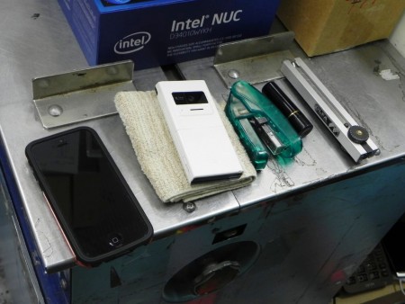 スマホはさっと調べ物する際に。携帯は会社からの支給品ですね。あとは領収書や荷受で使うハンコにカッターとお決まりのもの。店員さんなら皆が使う、レシートと保証書を留めるホチキスは常に所持しています。というのもレジ横にないときがあるんです。『使ったら、戻しておくように』と普段から言ってるんですけどね。中にはいろいろ持ち歩いているスタッフもいるようですが、自分はこれで十分ですよ。」
