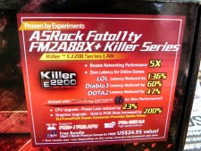 もはや説明不要、あのプロゲーマー“Fatal1ty”共同開発のATXゲーミングマザーボードです。「Fatal1ty Mouse Port」や「Key Master」「Purity Sound」などゲーマーモデルらしい機能はもちろん、型番にもある通りネットワークチップに「Killer E2200」を採用しています。