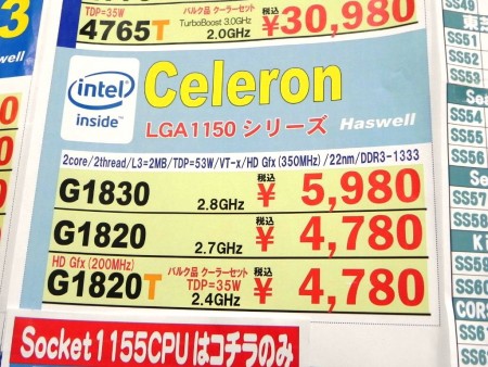 本日のコレオシは、発売以降、入荷完売を繰り返しているという人気のCPU「Celeron G1820T」を取り上げる。BUY MORE秋葉原本店では、6日(木)に再入荷を確認。同店スタッフ小川さんにによれば、週末は在庫ありで販売中とのこと。