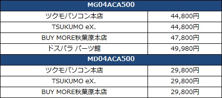 なお販売ショップはツクモパソコン本店、TSUKUMO eX.、ドスパラ パーツ館、BUY MORE秋葉原本店で、価格は以下の通り。