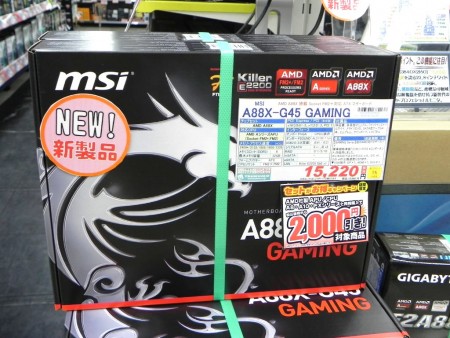 「Kaveri対応マザーの本命モデル『A88X-G45 GAMING』がようやく発売になりました。8日(土)の入荷後から好調に売れていまして、週末はかなりの枚数を販売しました。系列のTSUKUMO eX.でも好調と聞いていますので、売れ行きは全体的にもいいみたいですね。