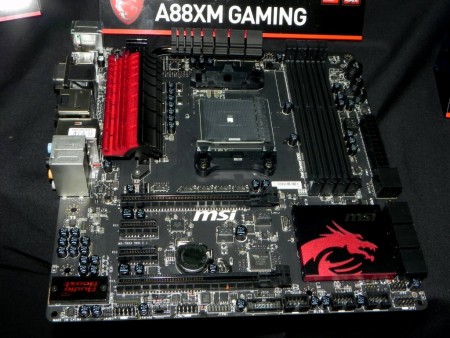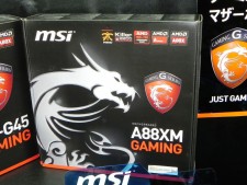 もうひとつMSIから。先日レビューをお届けしたばかりのSocket FM2+対応ゲーミングマザーボード「A88X-G45 GAMING」のMicroATX版となる「A88XM GAMING」が展示されていた。売れ行きも好調だという「A88X-G45 GAMING」に続き、こちらも人気が出そうなモデルで発売は22日(土)頃を予定。流通量が回復した「A10-7850K」とセットでと考えている人も多そうだが、もう少しの辛抱だ。