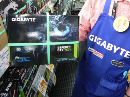 「GeForce GTX 750 Ti搭載のグラフィックスカードですが人気ですね。お客さまの話を聞いていると、GeForce GTX 660クラスの製品が欲しいけど、電源容量に制限があるという方。そんなにハイスペックなグラフィックスカードはいらないけど、ゲームはそこそこ動かしたいといった方などに人気があるようです。かつてのハイエンドカード『GeForce GTX 480』くらいの性能は出ますからね。電源は500Wもあれば十分。しばらくグラフィックスカードを買い換えてないという人にもお勧めです。