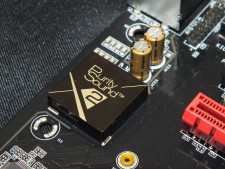 | 新生オーディオ回路「Purity Sound 2」。S/N比115dBのRealtek「ALC 1150」と、リーク電流10μAのニチコン「FGシリーズ」を搭載する | |