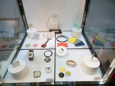このカードを持ち歩くのか、というぼやきは早計。会場にはウォッチ型などのデザインモックも並べられていた |