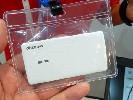 SIMはスマートフォン(あるいはタブレット)に収まっているもの、という概念を変えてくれるかもしれないのが「ポータブルSIM」。NTTドコモが6月に発表した新技術で、ブースの一角では現在開発中の試作環境がデモされていた。