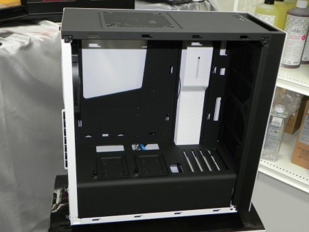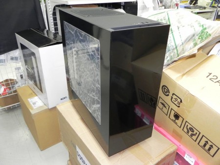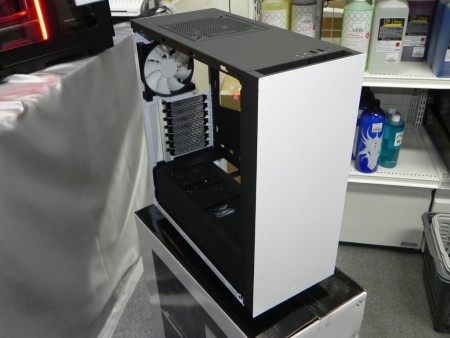 5.25インチオープンベイはもちろん、フロントアクセスポートやスイッチまで排除した大胆なデザインは、先行入荷したショップスタッフの間でも注目を集めていた。中には「最近のゲームはWeb経由で全てOKなので、光学ドライブは外付けタイプが1台あれば十分という人も増えてきました」と語る某スタッフ自身も、OSやドライバ類のインストール以外は光学ドライブは不要とか。すでに販売中の「H440」など、NZXTお得意のフロントフルフラットデザインが特徴のPCケースは、ここ最近じわじわと人気を集めているという。