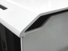 | サイドパネルはトビラのように開くことができ、メンテナンスも容易 | フロントには大口径200mmの冷却ファンを標準で備える |