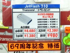 お買い得な『JetFlash 710』の登場以降、他社製品も値下げを敢行。USB3.0対応の“1円玉サイズ”もかなり手を伸ばしやすくなっている |