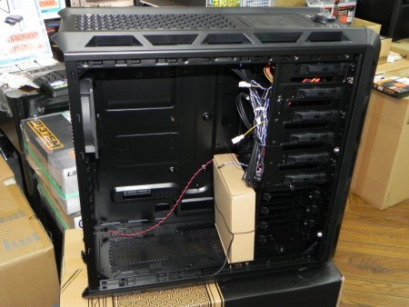 ドライブベイレイアウトは、5.25インチオープンベイ×6(ツールフリー構造)、3.5インチオープンベイ×1(5.25インチオープンベイ共有)、2.5/3.5インチシャドウベイ×4(トレイタイプ)、トップに2.5/3.5インチホットスワップ×1を備える。