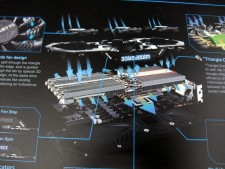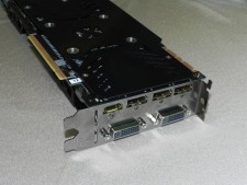 出力インターフェイスは、DualLink DVI-I×1、DVI-D×1、HDMI×1、DisplayPort×3の6系統。クーラーのロゴには7色に光るLEDギミックが搭載され、低負荷時にはファンの回転を停止するセミファンレス仕様。さらに背面部にはメタル製の大型バックプレートが実装される。