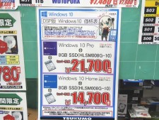 | パソコンハウス東映のDSP版Windows 10の販売価格。先日値下げを行った | ツクモパソコン本店のDSP版Windows 10の販売価格。Homeエディションはパッケージ版よりも高い |