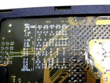 | 基板裏面。ジャンパ設定によりCPU電圧を1.80V~2.60Vまで調整できる | |