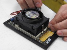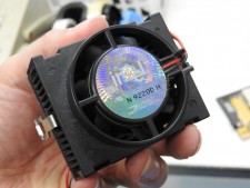 | 少々強引にドライバーを突っ込み、15年ぶりに外すとIntel純正の小型CPUクーラーが装着されていた。TDPは23.7Wとされているので、これで十分であった | |