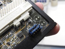 | 眺めているだけでも懐かしいSocket 370。右端にはジャンパピンが用意されている | |