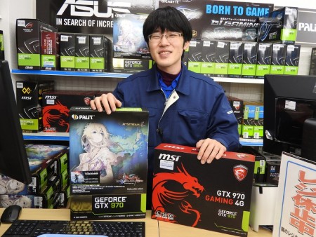 先月23日にリニューアルオープンしたドスパラ パーツ館。本日は多くの自作ユーザーで賑わう、新生ドスパラ パーツ館の人気グラフィックスカードをご紹介。ゲーミングPCにオススメしたいGeForce GTX 970搭載モデルをスタッフの中井さんに聞いてみよう。