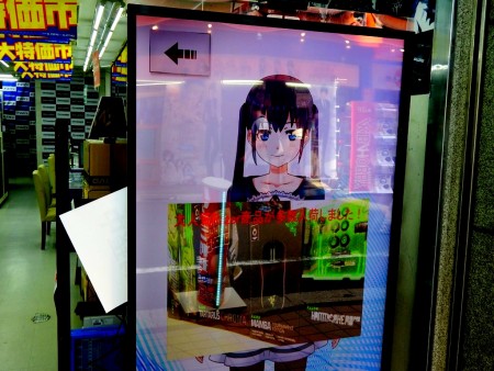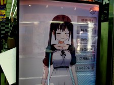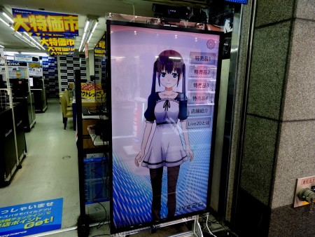 2D画像を立体的に動作させることができるLive2Dにより生み出されたキャラクターで、Kinectセンサーとの連携により指の動きにも反応。店頭にて特価品を紹介する他、今後は音声による接客なども行うようなるという。