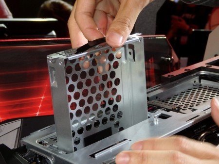 スリム光学ドライブはトップ前面部分に実装。また後方には差し込むだけで使える2.5インチベイを備える | |