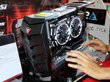 近頃ではコンパクトゲーミングPCにも注力しているMicro-Star International(本社:台湾)。今年のCOMPUTEXでは、VR対応のハイスペックゲーミングPC「Aegis」を展示し、多くの来場者の注目を集めていた。