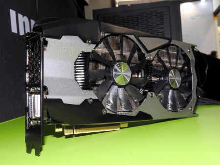 また、GTX 900シリーズではミドルレンジ帯で採用されていた、100mm径のデュアルファン搭載モデルをGTX 1080 / 1070モデルでも投入予定とのこと。300mmオーバーと巨大な「iChill X4」搭載モデルに比べて短めな約280mmのカード長に加え、2スロットに収まるデザインになっている。