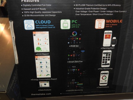 また本体には制御コントローラを内蔵。USBポート経由でマザーボードに接続することで、専用ユーティリティ「Smart Power Management」による、電源、CPU、グラフィックスカードのリアルタイムに監視に対応。その他、消費電力の分析やファンコントロール制御、異常を警告するアラート表示、LEDカラー変更などもサポートされる。