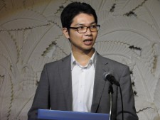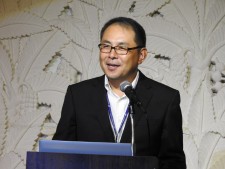 | 冒頭、挨拶に登壇したサードウェーブデジノス代表取締役社長 田中基文氏 | 「GALLERIA Gamemaster」シリーズのコンセプトを解説したサードウェーブデジノスゲーミング事業部 部長 野口基督氏 |