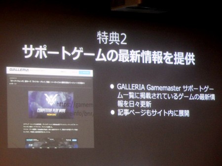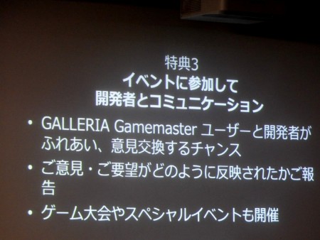 また、新たな会員サービスとして「ガレリアメンバーズ」を立ち上げることが発表された。これは「GALLERIA Gamemaster公式サイト」から登録できる会員サービス。「GALLERIA Gamemaster」シリーズPCの所有有無にかかわらず、誰でも無料で登録が可能。メンバー限定の特典を受けることができる。