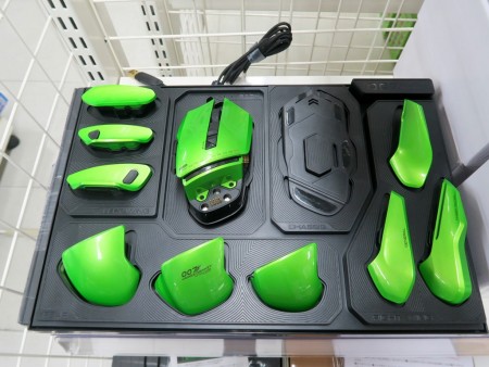 それと8,200dpiのレーザーセンサーを搭載していいたり、マウスとしての性能もなかなか。ツールをダウンロードしてくれば各ボタンに機能割当もできるので、ゲーミング向けモデルとしての使い勝手も十分ですね。売り場にはガチャガチャ換装できるサンプルを用意していて、1階には触って試せるデモ機もアリ。アレコレ換装して動かしてみたい場合は、1階のスタッフに声をかけてみてください。