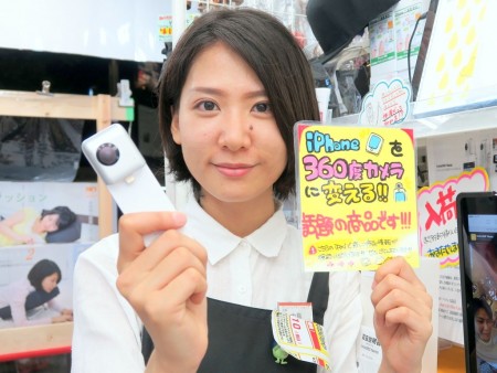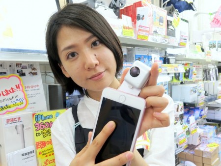 ズバリこれが何かというと、全方位グルリのパノラマ映像が撮影できる360°カメラ!世間的にもこの手のカメラはいくつか発売されていますけど、その中でも一番コンパクトなモデルだと思います。iPhoneとLightningで合体させるタイプなので、使い方もスゴく簡単。いつもiPhoneでカメラ撮影する感覚で、お手軽に360°撮影ができるんです。