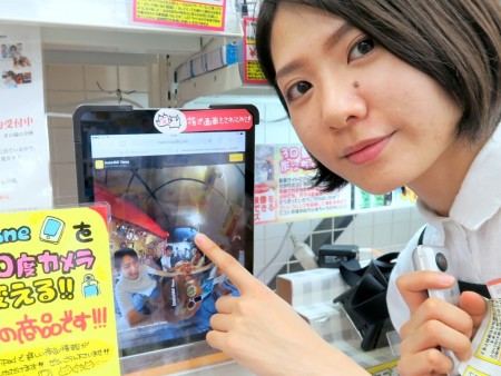 | 店頭では、指でグリグリ触って360°を体感できるデモも実施中。撮影映像はVRモードに一発切り替えが可能なので、VRゴーグルを使えば撮影当時のその場全体を追体験できるぞ |