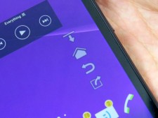 | 5.5インチのiPhone 6 Plusでも厳しい片手操作、実はAndroidの場合はそれほどハードルが高くない。戻るボタンも手元にあるし、画面上好きな場所に置いておくこともできる | |