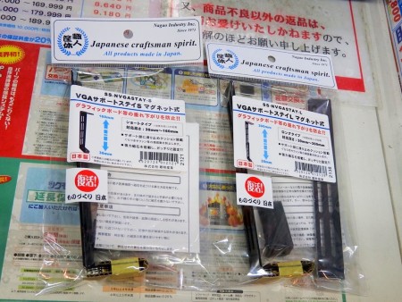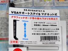 重量級のグラフィックスカードを支え、自重による歪みを防止する有限会社長尾製作所(本社:神奈川県川崎市)のマグネット式サポーター「VGAサポートステイ マグネット式」がアキバ店舗に入荷。明日14日より発売が開始される。長さは「ショートタイプ」と「ロングタイプ」の2種が用意され、価格はそれぞれ税抜1,160円と1,560円。