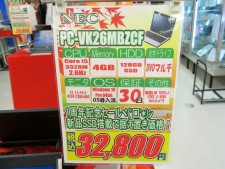 もちろんこの1台を売ったらおしまい、というワケじゃありません(笑)。ほかにも激安なアイテムがたくさんありまして、特に中古ノートでは、お値段据え置きでも構成がかなりお買い得になっている物が少なくないんです。このNEC製ノート「PC-VK26MBZCF」もそう。第3世代のCore i5に4GBメモリ搭載のモデルですが、ストレージが新品SSDに換装済みで税込32,800円とお得に!