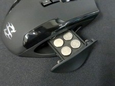 | サイドには5つ並んだサムボタンとdpiインジケータを搭載。最大6段階のウェイト調節にも対応している | |