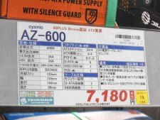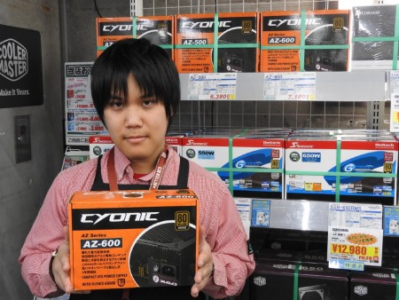 本日のコレオシは、先月発売された欧州CyonicブランドのATX電源ユニット「AZ」シリーズ。TSUKUMO eX.5階「グラフィックボード・PC電源フロア」スタッフの椎葉さんが、このほど600Wモデル「AZ-600」を購入。早速開封し、本体を見せてもらった。