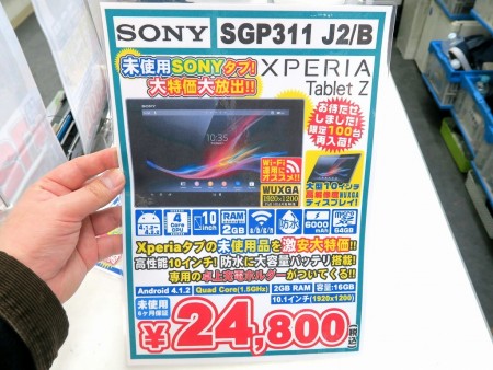| もはや新品での入手が極めて難しい、ソニーの極薄タブレット「Xperia Tablet Z」(Wi-Fiモデル)が再入荷。以前に販売された際は、たちまち完売してしまった人気モデルだ |