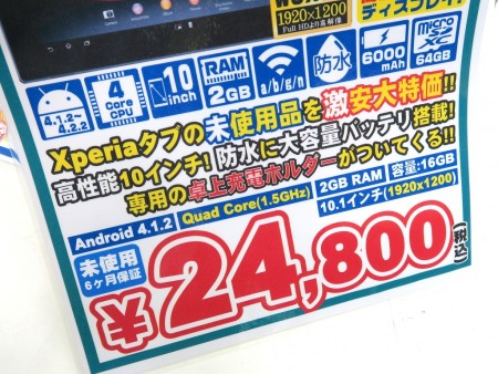 なお、スペックは一般販売されたWi-Fiモデル(SGP312JP)と同等ながら、「カスタムモデルのため4.2.2までしかアップデートできない」(ショップ)とのこと。