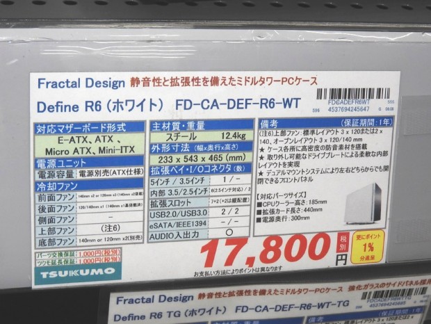 ラインナップは左サイドパネルがソリッドタイプの「Define R6 White」と、強化ガラスを採用した「Define R6 White TG」の2モデル。前者はツクモパソコン本店で、後者はTSUKUMO eX.でそれぞれ実機に触れることができる。