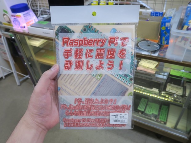 はんだ工作による組み立てが必要で、製品には「Raspberry Pi Pico」を含め必要なパーツがすべて同梱。追加購入不要で地震計を作り上げることができる。また、同サークルによる同人誌「Raspberry Piで手軽に震度を計測しよう!」も付属している。