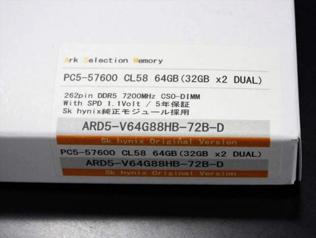 初のネイティブDDR5-7200対応チップを搭載するCSODIMMメモリ「ARD5-VxxGxxHB-72B-D SKhynix Edition」が発売された。パソコンSHOPアークのオリジナル製品で、ラインナップは8GB x2枚セット「ARD5-V16G46HB-72B-D」(税込25,080円)、16GB x2枚セット「ARD5-V32G88HB-72B-D」(税込39,380円)、32GB x2枚セット「ARD5-V64G88HB-72B-D」(税込76,780円)。入荷数はいずれも少量。