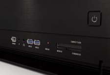 フロントパネルは開閉式で、I/OはUSB3.0×2、IEEE1394×1、SD/microSD/CF対応マルチカードリーダーを標準装備。冷却ファンはサイド120mm×2を搭載し、オプションでサイド120mm×1、リア80mm×2を増設できる。