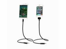 浮遊感ある独特のスタイルでスマートフォンの充電とデータ通信ができる「金属製 USBフレキシブルケーブル」が上海問屋から発売された。折り曲げ自在な蛇腹状のフレキシブルケーブルを採用し、設置の自由度が高い。ラインナップはiPhone 4/4Sなどに対応するアップル用30pinドックケーブルと、Androidスマートフォンに対応するmicroUSBケーブル。