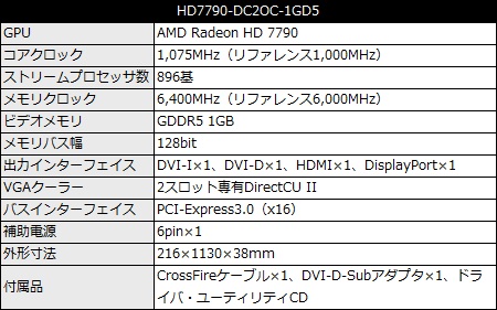 ワールドワイド向けプレスリリースで既報のRadeon HD 7790オーバークロックモデル「HD7790-DC2OC-1GD5」の発売が明日11日より開始される。