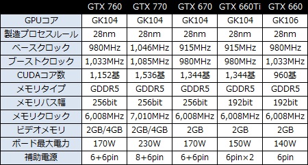 一方、メモリ周りの仕様は同等で、Kepler世代のミドルレンジでは初めて256bitのメモリバス幅を採用。メモリ容量も2GBに加え、4GBに対応し、既存モデルGeForce GTX 660/GTX 660Tiから、よりパワフルな仕様へと変更された。